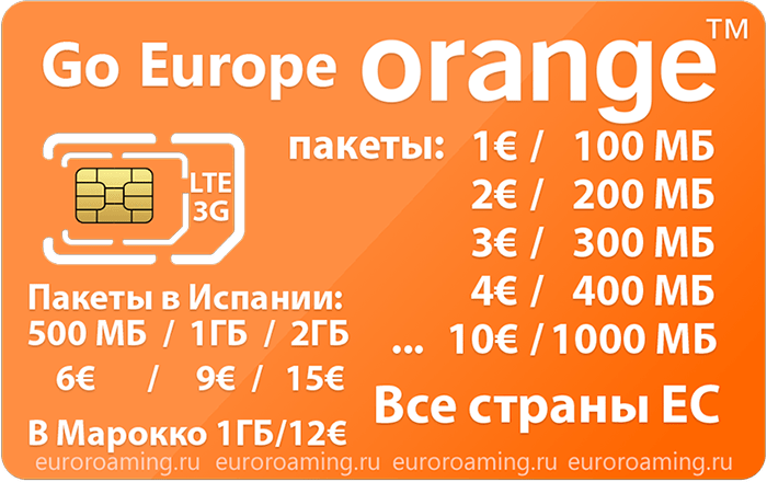 - Отличный тариф предлагает мобильный оператор Оранж. По условиям «Go Europe» абонент получает для пользования 100 МБ на мобильный интернет и 60 минут на разговоры там, где вы находитесь. С этим пакетом вы сможете объездить 36 стран Европы.